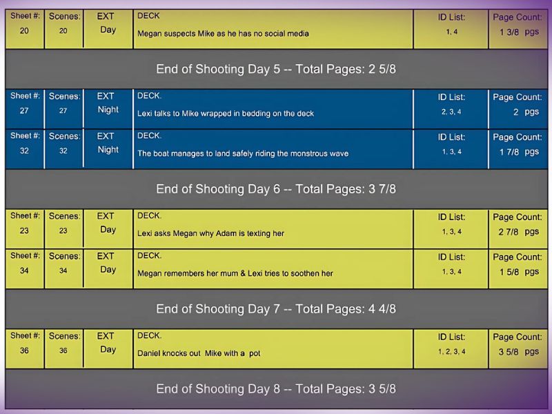 The beauty of a digital stripboard is that you can reorder scenes instantly, see conflicts highlighted automatically, and generate reports with a single click.